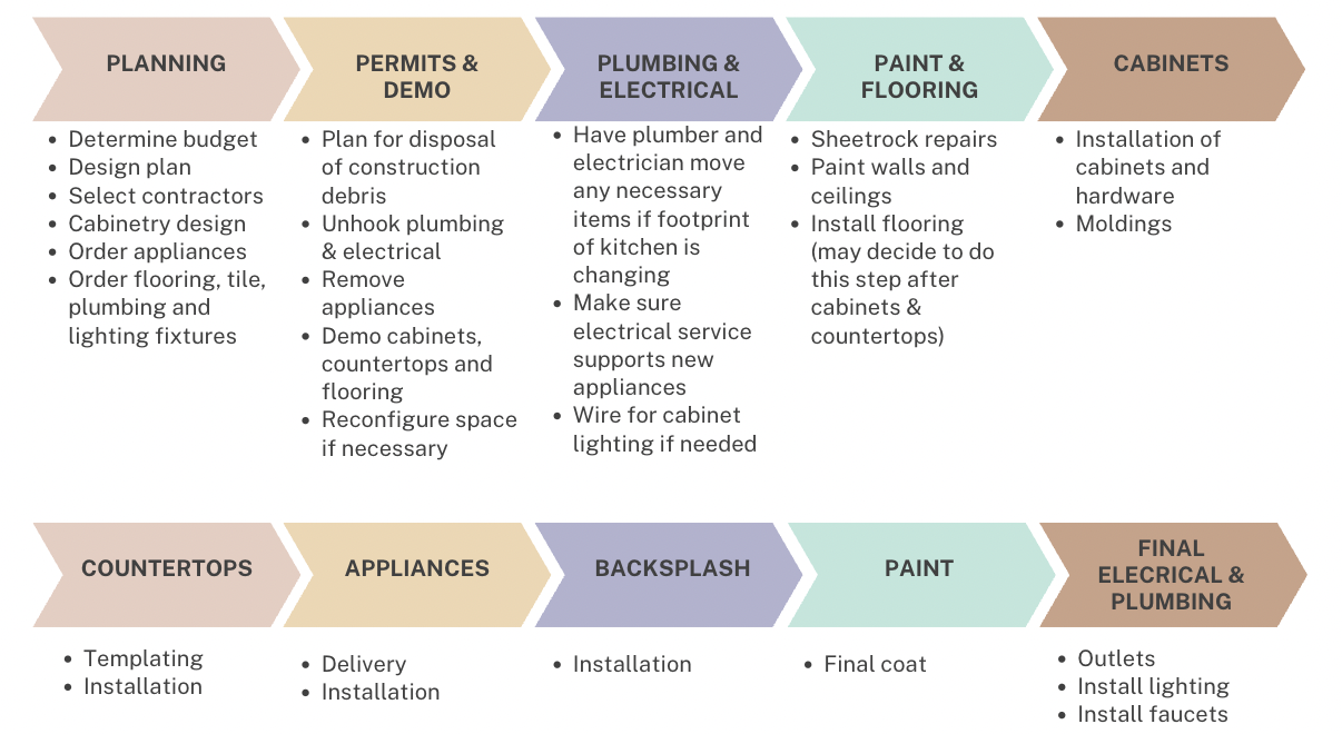 In our current supply environment, you may find things like tile, appliances, and even paint in short supply. Make your selections up front and know how long it will take to get them so you can avoid being in the middle of a renovation and experience a disappointing delay. Know what permits/inspections might be necessary and who is responsible for handling this process.